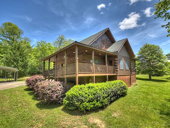 Lovely true log cabin in a pastoral setting just minutes from downtown Mineral Bluff, McCaysville and Blue Ridge. This classic 3BR 2BA cabin is instantly welcoming. Inside you'll find an ample kitchen, great room, large main bedroom with its own porch access & en suite bath, 2 full size additional bedrooms with closets. You'll love all of the covered rocking chair porches-just perfect for a cup of morning coffee as you look out over the scenery and watch for hummingbirds. Beautiful grassy yard would be perfect for a garden and fire pit. 2 Car garage and separate car port gives plenty of space for all the mountain toys you need. Get away from it all with this move in ready cabin! 2021-08-03