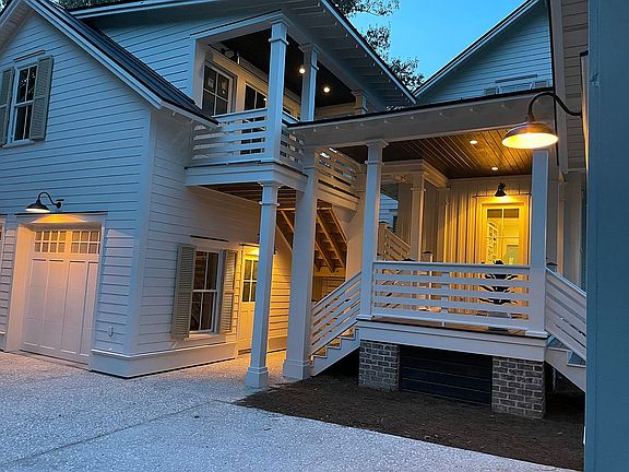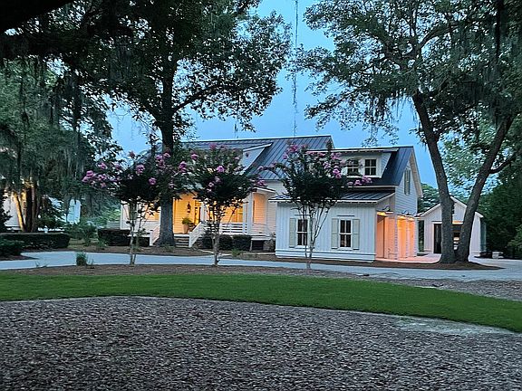 Beautiful lowcountry living with 2 master suites on first floor. A back porch with gas log fireplace and 1000 sq feet of living area on the porch! This home was built in 2017 and shows brand new! Open area loft on second floor with lots of light, book cases, office area and media room all in one! Recently added guest suite, detached garage and four bed bunk room in the main house. Beautiful dining area with lots of beautiful sun shine and overlooking the pond! Standing seam metal roof. Pine wood floors. Beautiful low country home on a premium lot in the heart of Oldfield!