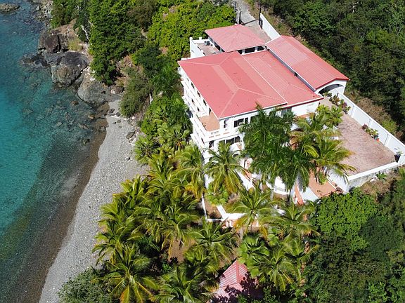 Location Location Location. That is what they say is most important about Real Estate, and that is certainly the case with this home. The large Italian inspired villa sits on a sandy/rocky beach easily accessible via walkways from the villa thru lush Palm Gardens. Views are outstanding as is the Estate Bellevue location. There are multiple levels so the home can be used for rentals, primary living, or a mix of both. This is a concrete bunker.