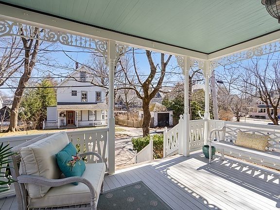 Nestled in the sought-after village of Auburndale, this picturesque Victorian, a timeless treasure built in 1895, seamlessly blends classic charm with modern convenience. Enter through the welcoming front porch where French doors open to the airy living & dining area, boasting lofty ceilings, ample windows, a cozy window seat, & built-ins. Sunlight floods the family room, streaming through its numerous windows and skylights, creating a warm and inviting atmosphere. The updated kitchen features granite countertops, maple cabinetry, stainless steel appliances, an eating area, & a convenient powder room. Ascend to find three well-appointed bedrooms and a family bath on the second level, while the serene primary bedroom with ensuite bath awaits on the third floor. Outside, a private fenced yard with mature plantings and a blue stone patio offers a peaceful retreat. Ideally located near schools, shops, parks, commuter rail & express bus. Offering convenient access to I-90 and I-95.