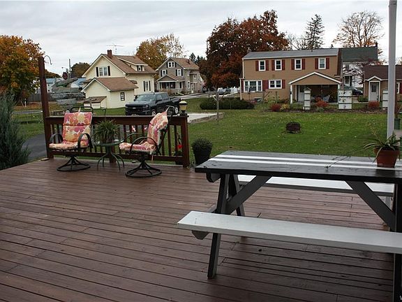 Terrific village home with comfy front porch, large yard and updates. This three bdrm 1 1/2 bath home has a great kitchen with cathedral ceiling and skylights. It's open to the dining room with tongue & groove and beamed ceilings. The first floor also has a large half bath laundry room combination with glass slider to the huge deck. Living room and Family room or study has a gas fireplace also hardwood and ceramic floors. Some updated include Main roof 2017, Furnace 2018, large blacktop driveway 2017 and vinyl thermal windows. Rear deck is amazing almost the width of the house. Two car garage and large room off back for man cave or shop. Lots of entertaining areas plus shed. Located just a short walk to R-H High and Middle school. 2021-01-11
