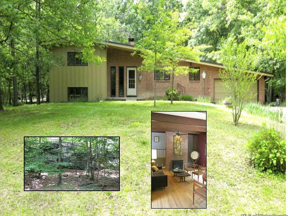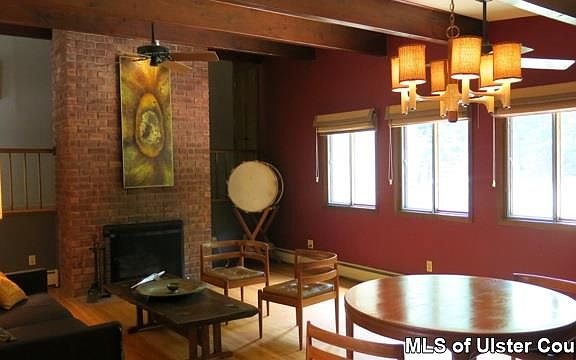 Mid Century Contemporary in great neighborhood. Semi open floor plan with 3 bedrooms / 2.5 baths just minutes from the center of Woodstock. Whether for full time or weekenders, this house is home has a great flow with beamed ceilings, wood floor, brick fireplace and skylights. Master bedroom has newly renovated private bath and lots of closet space. 2 additional bedrooms on 2nd level share vintage style bath. Lower level includes separate laundry room, office/music room plus additional room with separate entrance which could be used as art studio, extra office space or even another bedroom or guest space plus half bath. The property has wonderful private back yard with plenty of flat land backed by gorgeous rock outcroppings. There is also large shed / workshop with electric and fenced in garden area. Yes, this house is actually as cool as it looks.