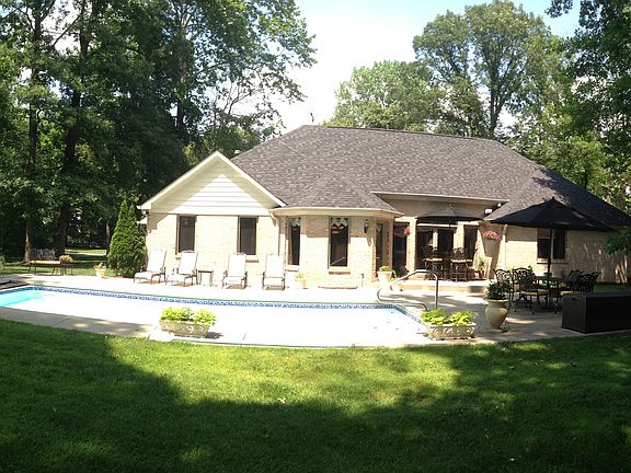 Stunning Custom Brick Ranch over finished basement on Gorgeous Wooded Lot! Impossible not to FALL IN LOVE, charming layout, craftsmanship, high quality features including luxurious Master suite, solid surface counters, gourmet kitchen, solid wood cabinetry and vanities, tray/vaulted ceilings, tile/wood/carpet in all the right places, solid wood doors/trim, 2 beautiful fireplaces, and much more; HEATED pool and indoor/outdoor speaker system for 5 months of outdoor BLISS! Hurry, Seller's Market!