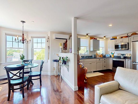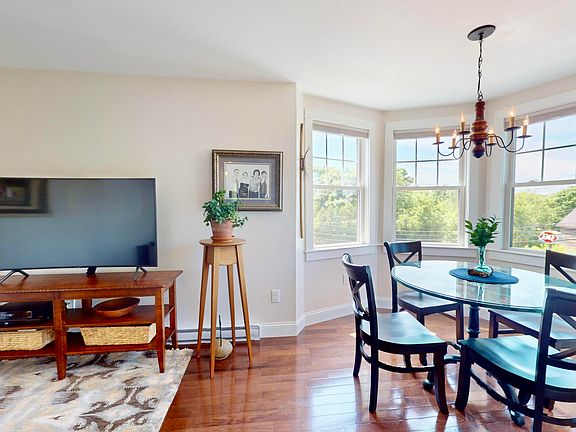 Beautifully remodeled 2-bedroom/1-bathroom condominium within walking distance to the Rockland boardwalk and downtown shops and restaurants. Located on the third floor of the Narragansett building, this meticulously maintained unit offers stunning harbor views from the dining room's bay window. The thoughtful open-concept layout seamlessly integrates the living room and kitchen, creating a spacious and inviting atmosphere. The unit features a versatile small bedroom currently used as an office, a beautifully tiled bathroom with a tub/shower, and a primary bedroom that opens onto a delightful deck, perfect for enjoying your morning coffee. Elegant hardwood floors and high-end finishes throughout enhance the sophisticated ambiance of this home. Enjoy the ease and convenience of condominium living in a prime location that truly has it all.