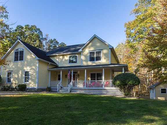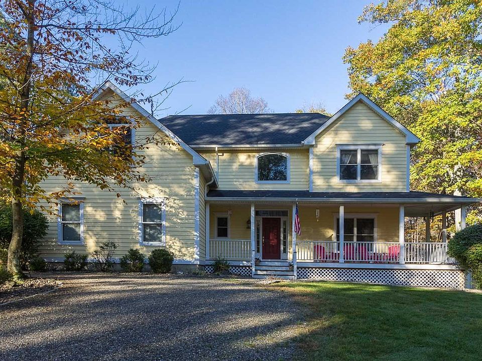 Come experience this traditional farmhouse design with modern amenities & classic charm. This warm & inviting home is situated on a quiet cul-de-sac only a few minutes from Rhinebeck village. With 9ft ceilings, the main level includes a light-filled living room with pellet stove, a gracious family room with gas fireplace, a formal dining room & an expansive eat-in kitchen with handsome custom cabinetry, granite counters & all stainless appliances. The 1st floor also has gleaming hardwood floors with Brazilian cherry inlay throughout. Upstairs are 4 bedrooms & 2 full baths. The expansive master suite includes tray ceiling, gas fireplace, walk-in closets & a fully renovated bath, including gorgeous tile shower & resin tub. In addition, there are 3 spacious secondary bedrooms, serviced by a full bath & laundry room. The partially finished lower level has a game room with custom built-ins, an inviting media room & a separate room for mechanicals. Peerless brand systems, as well as central A/C, have been well maintained, & the essentials are supported by a backup generator. The covered front porch & rear deck provide for outdoor entertaining & there is a custom sports court for basketball or other activities. The 2-bay garage is oversized, & there is a substantial storage shed with overhead door for lawn equipment. This beautiful +-1.5ac property is near the end of a no-outlet street & close to all major amenities.