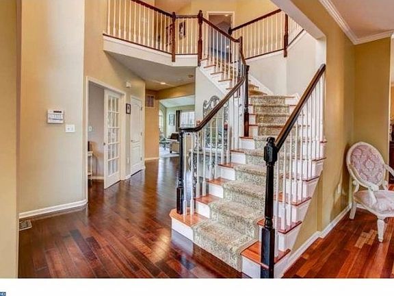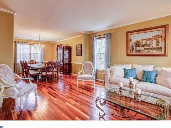 MAGNIFICENT PALATIAL Estate home located in an Enclave of Newer Upscale homes. This sophisticated 5 bed 3 full bath home is set on a 7.58 acre lot in one of East Windsor's premier communities. Enter into the dramatic 2 story foyer surrounded by formal living and dining rooms with bay windows and detailed molding. All hardwood floors on first and second levels. It captivates you with an open floor plan which includes a Family Room with a soaring ceiling, stunning fireplace and a wall of windows which flows seamlessly into the state of the art kitchen with a large center island, 42 " maple cabinets, stainless steel appliances, upgraded lighting and a relaxing breakfast area. A library/5th bed/au pair with a full bath complete the first full. Upstairs you will find an enviable Master Suite with a spa-like bath, a walk in closet and a separate sitting area. The huge fully finished walk out basement features a game room with a bar area and a gym. The resort style backyard includes an enormous patio area, a refreshing in ground pool, hot tub, built in gourmet cooking entertainment area and is all professionally landscaped all for your enjoyment. Two-zoned heat/AC, security, sprinkler system and central vac. Convenient to NYC, Newly widened Turnpike, major highways, shopping, parks and restaurants. Excellent schools. East Windsor Makes List-Ranks 9 out of 15 NJ Schools with the Highest AP Test Performance! ALSO Some of the best Private Schools are located in the area including the prestigious PEDDIE School -(right in the town). No detail has been overlooked. You will be impressed.