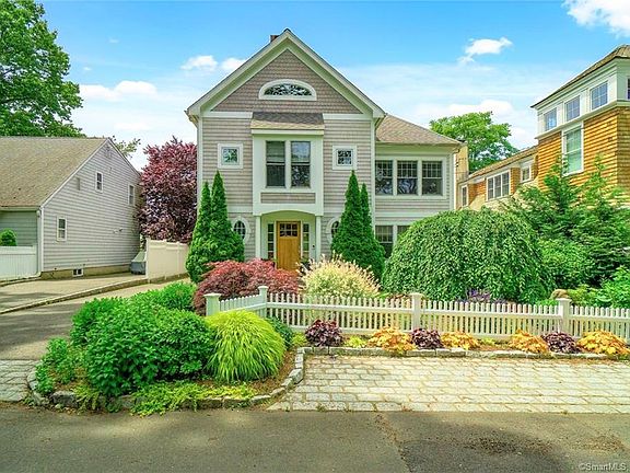 Take a short stroll down the street to the private Pine Point Beach where you can take a swim, play in the sand and drop a mooring for easy access to a boat. Enjoy beach community living with privacy too! This pristine Colonial has high ceilings, a bright and open floor plan that is perfect for entertaining inside or out. Enjoy gorgeous beach and water views from the private sundeck off the spacious master suite. Additional features include a Chef's kitchen with large walk in pantry, 4 en suite bedrooms, sun room, 3rd Floor finished walk up that could be a home gym or playroom, main floor mud room/laundry room, huge closets throughout, private fenced back yard and gorgeous landscaping. Walk to beach, restaurants, concerts and boat launch. It's a lifestyle you'll love!