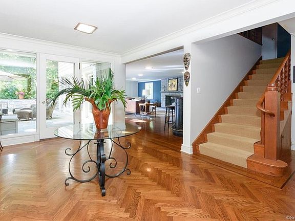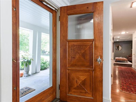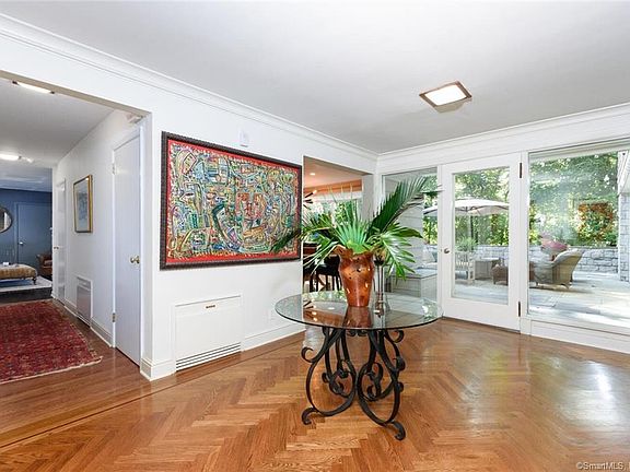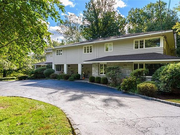 Nestled on one of Wilton's most-sought after streets,this mid-century modern home is sure to impressCustom designed by John Paul Turner, a student of Frank Lloyd Wright, this home has been lovingly maintained and updated by its second owner.Warm and inviting,the architecturally crafted front door leads to a stunning front to back foyer which opens to the back terrace.Step into the large living room with cut granite fireplace and French doors that was once enjoyed by the original owner for piano concerts.A large den/office offers additional living space.The spacious dining room has an enormous bow window offering an abundance of light.Enter the heart of the home and you will find a retro kitchen with the original cabinets and countertops which have been meticulously maintained since its construction.Stainless steel appliances,pantry,bamboo floor and mudroom with side entrance add an updated flair to the home.The attached family room,full bath and gas fireplace made of river stone and slate provide a cozy hangout for family and friends.Head up to the second floor and you will find a double wide hallway. The large master bedroom suite has a walk-in closet, sitting area and newly renovated bath, plus 5 additional ensuite bedrooms.Other features include custom built-ins, full basement that can be finished for additional living space,circular driveway and private flat backyard.The extensive stone terrace with fireplace is perfect for large gatherings A true architectural gem