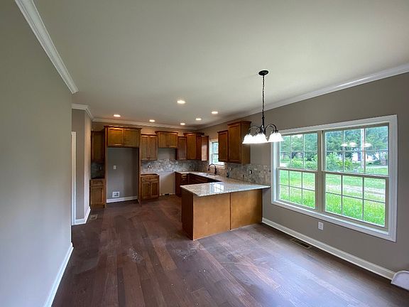 3 bedroom, 2.5 bath, double vanity, fireplace, covered porch, hardwood flooring in living areas, carpet in the bedrooms, tile in bathrooms.