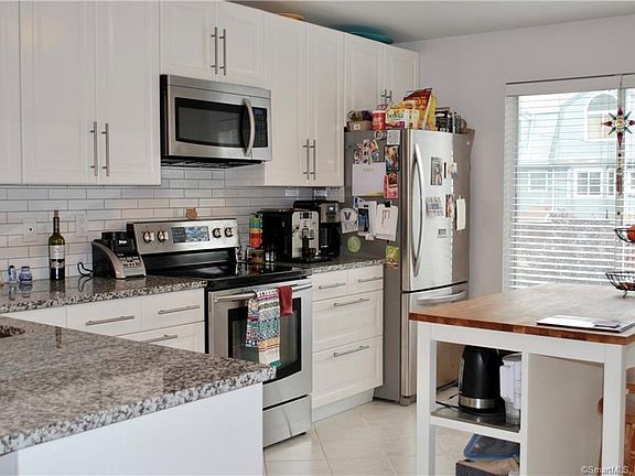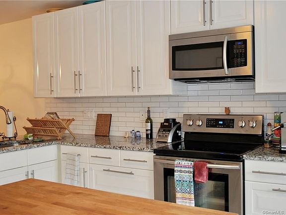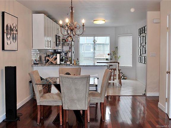 Bright beautiful tri-level townhouse with 2-3 bedrooms downtown Stamford. Open floor plan on main level complete with beautifully updated white kitchen, stainless steel appliances and granite countertops. Hardwood floors throughout, spacious living-dining room area with a walk-out deck and half bath. The deck stairs lead to a common yard area. Upper level contains large master suite with large walk-in closet, second bedroom and another full bath. Washer and dryer are also on upper level next to bedrooms for your convenience. All closets have been fitted with Elfa shelving. Lower level has an additional bonus room with a wall of closets that can be used as a third bedroom, office, playroom or a home gym. Plenty of parking too! Your own 1-car attached garage, 1 covered parking (first come, first serve basis) or park 1 in front of your own garage door. Ideal location on quiet dead-end street but still walking distance to restaurants, shops, farmers market or other seasonal events. Conveniently close to I-95 or Metro North. Dont miss this opportunity to enjoy Stamford City living at its best!