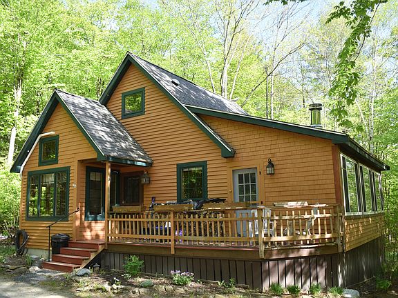 Adorable and cozy 2 bedroom, 1 bath home will be easy to maintain while providing a perfect place to call home. First floor boasts wood floors, cathedral ceiling, open concept kitchen, living and dining areas. Full bath with walk-in shower, soaking tub, washer, dryer and more. Large loft bedroom/office on second level is spacious. Efficient home has heat pump to provide cooling in summer and heat in winter, as well as propane fireplace. newly glassed in porch has new wood stove waiting to be hooked up. Nestled on 1.67 acres just off Route 17 makes this a convenient place to live. Privacy awaits!