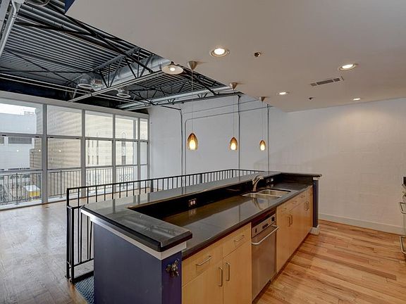 One of a kind top floor 1 bdrm/1 ba unit in a boutique building across from the Fox! This light-filled loft has it all. Soaring ceilings, exposed ductwork and concrete, floor to ceiling windows, rich hardwoods throughout the modern space. Kitchen features SS appliances, Silestone quartz counters, stained cabinets. Watch the stars enter the Fox stage door from your balcony! Unit offers a gated assigned parking space and must-have storage unit. HOA dues cover gas/water/cable/internet. Walk Score 91, steps from the Fox, Georgian Terrace, North Ave Marta - all of Midtown!