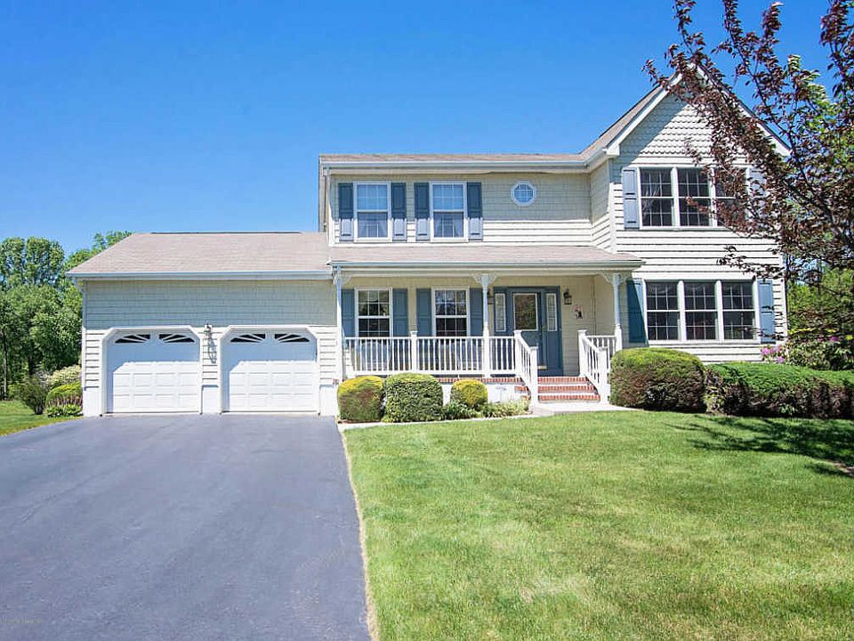 Lovely & Meticulous 4 Bedroom , 2.5 Bath colonial with front porch located in quiet development. Front exterior has newer cedar impressions siding. Cheerful sun room built in 2002 with vaulted ceiling and recessed lights and sliders leading to maintenance free trex decking with maintance free railings. Like new hardwood flooring in Foyer, living room & dining room. Large eat kitchen with center island and granite counter tops, & beautiful tumbled marble backsplash. French door leading to deck and Large and private back yard with enough room for a pool plus+more. Paved driveway, full basement. Newer anderson windows in Master bedroom, and front three in living room. One owner and this home has been maintained with pride. Great opportunity to live in a wonderful neighborhood.
