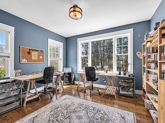 Live, work & entertain in stylish, well designed custom built 5000+ SF, 10+ room, 4-5 BR, 4.5 bath Chapdelaine Contemporary Craftsman home. You'll love the scale of sun filled living space/open floor plan flow, balcony loft great room showcasing floor to ceiling hearth & fireplace/ double door walkout to back deck/ 1.7acre yard and chef's gourmet kitchen w/quartz center isle, lighted cabinetry & dining area. Formal dining room, butler's pantry, home office, library, mud room w/laundry & lav complete the main level. Upstairs boasts loft hallway, 4 bdrms including a primary ensuite, jack 'n jill w/ full bath, hallway bath, 4th BR & bonus rm/5th bedroom. Walkout lower level has an extra 1200+SF finished living that includes a rec room, home gym, guest suite w/ full bath, storage & walks out to paver patio w/ hot tub. Tankless Rinnai on demand hot water. plumbed-in gas generator & garden shed are included. Room for a pool. Near pond/conservation area.
