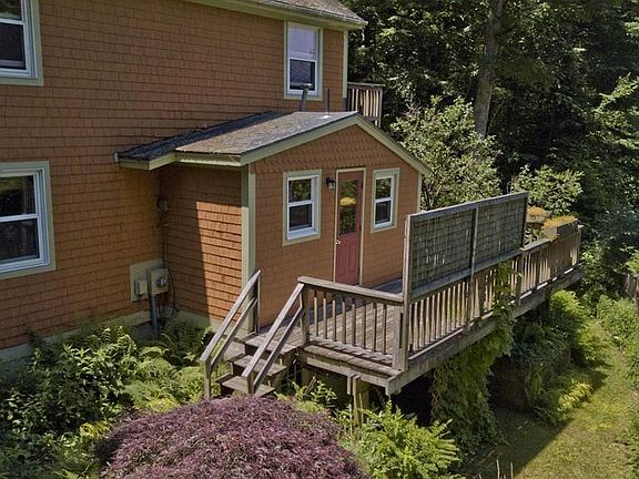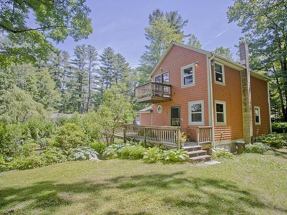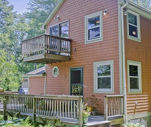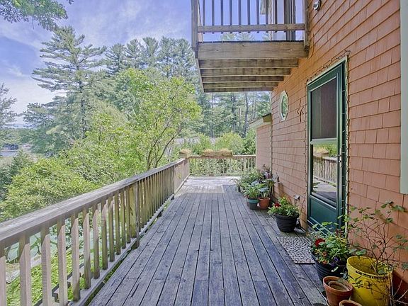 Feel inspired each & every day in this artsy one of a kind cottage w/gorgeous views of Lake Metacomet! Enjoy year round activities such as kayaking, fishing, ice-fishing & ice-skating on this 74 acre recreational lake - public access is only yards away! The 1st floor features an open floor plan w/kitchen, dining area & living room w/energy saving wood stove + a bedroom & full bath! A flexible floor plan offers you 3 bedrooms or a 2 bedroom + family room. 2nd floor has a desk nook, bedroom, and a master bedroom w/lots of closet space & a Juliet deck overlooking those magnificent views! You'll love the wraparound deck - see an amazing variety of birds including eagles! The yard is simply divine w/raspberry bushes, beautiful plants/flowers, raised garden beds & a spacious shed/workshop w/lean to. Recent updates include replacement windows, exterior home stain, some doors/storm door, tile wall shield f/wood stove, lighting/fan. Town water & Town sewer!