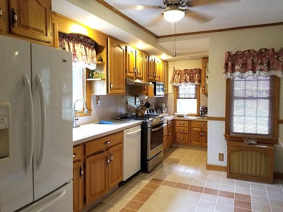This meticulously maintained and updated vinyl sided cape is located on a dead-end street in Feeding Hills area of Agawam. First floor offers: Spacious kitchen with beautiful cabinets, nice appliances, ceiling fan and tile floor; bright dining room with hardwood floor and bay window; living room with hardwood floor and ceiling fan; comfortable 4 season sun room with pellet stove; 2 bedrooms with ceiling fans; and a bathroom. Second floor offers large home office with skylights and a bedroom. Other features: gas heat & hot water, one car garage, concrete driveway with plenty of parking, large yard, storage shed & more. Updates APO: Heating boiler & hot water tank in 2017, interior paint, some floors, replacement windows, vinyl siding and more. Don't miss this one!
