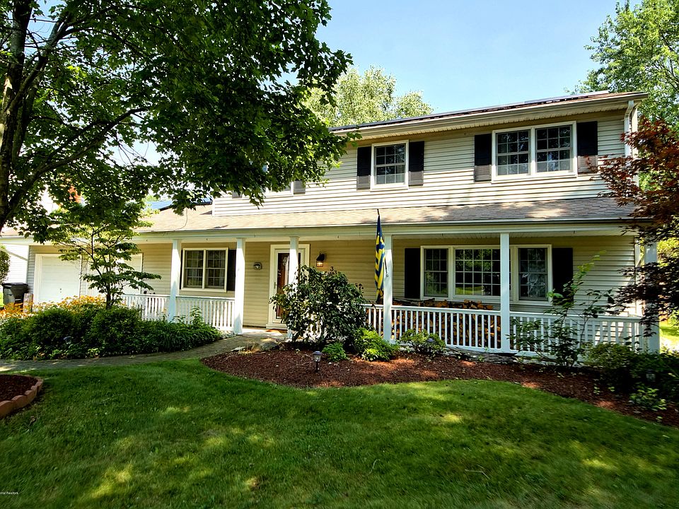 A must see Colonial 4 Bedroom, 2.5 bathroom home with a spectacular private backyard in quaint Allentown Borough. Relax and enjoy fully fenced in yard and Trek deck overlooking a fully stocked Koi pond. This home offers an upgraded kitchen with granite counter tops, and newer stainless steel appliances that opens directly to the dining room and a STUNNING great room with cathedral ceilings, skylights, and wood-burning stove. Upon entering the home from the front door there is a renovated office with a custom wall unit and french doors as well as another full living space. Just off of the kitchen to the right is a den, currently being used as a gym and very suitable for a play/game room and to the