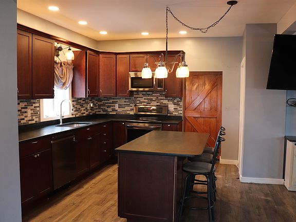 Welcome to this 5 bedroom,2 bath ,2 story New England home situated on 0.36 acres. This spacious home features an open floor plan with a bright and airy living room and well equipped kitchen with soap stone counter tops . First floor bathroom has a laundry area with a tiled shower, dining room is off the kitchen, bedroom on the first floor ,with an office or study, or a possible business or in-law, you choose. The second floor offers a primary bedroom with a bathroom off of that ,with a balcony for your morning coffee, with 3 other bedrooms. This home has mini splits up and down along with a pellet stove. .This home will give you plenty of options for additional living space, don't for get the oversized 30x30 heated garage with a lift and extra above full storage, and a one car garage attached. There is an above ground pool for the hot days. This home has been renovated from top to bottom, turn key ready waiting for you.