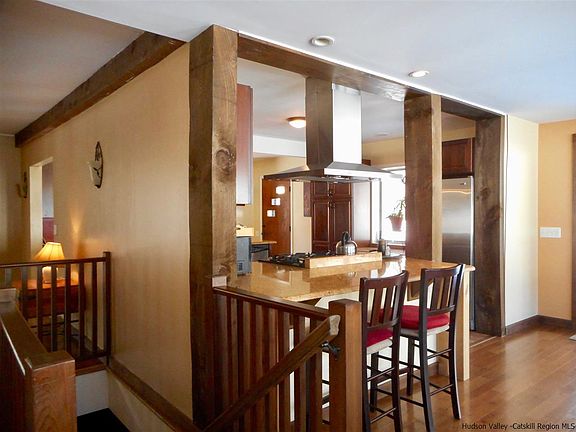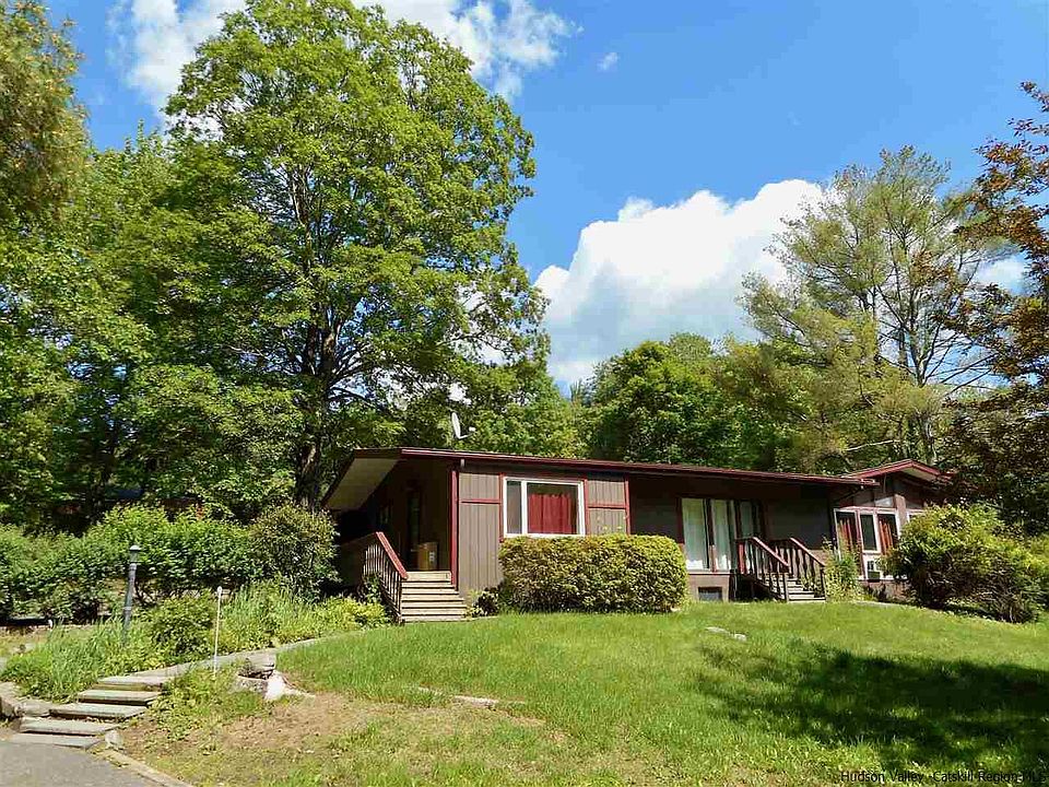 Babbling brook, mature gardens and refreshing in-ground pool await you at this charming, spacious 3 Bed/3 Bath ranch tucked away off desirable Cooper Lake Rd. Perfect for anyone needing extra room, the convenience of a fully furnished home, and close proximity to the village of Woodstock. Walk or bike to Cooper Lake and Bearsville staples The Cub Market, Sunfrost Farms and the Bear Cafe. Main level features wood floors, beamed ceilings, cozy living room with floor-to-ceiling stone fireplace, gourmet cook's kitchen with 2 breakfast bars & separate built-in work space, dining area w/sliders to blue stone patio & pool, large en-suite master with walls of windows, jetted tub and separate shower, plus 2 additional bedrooms and a second full bath. Den, full bath and 2 bonus rooms in finished basement supply even more space to find privacy, work or relax. Piano in the living room available for use, with tuning paid for by landlord. Combination propane and electric heat throughout, window A/C unit in master. Self-starting generator provides year-round security of services. Semi-private and just 2 miles from the center of Woodstock. First, last and one month's security deposit due at lease signing. Renter's insurance required of tenant. Additional $150 monthly cleaning fee also applies, plus optional $5,000 pool opening/closing/cleaning/chemicals fee for anyone who wants enjoyment of the pool (Memorial Day to Labor Day). All utilities, including snow plowing paid by tenant. Owners have a no-pet policy on this property.