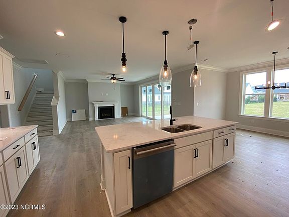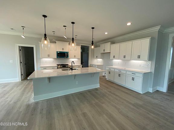 The Whitley Plan by Robuck Homes offers an inviting rocking chair front porch and a spacious cover back porch overlooking a large homesite. This modern farmhouse style home has an open kitchen/ family room design with a glass sliding door and a fireplace. The upstairs has a large primary suite and spa bath, 2 bedrooms and a finished bonus room. With a full guest suite on the first floor, you'll have plenty of working and living accommodations for the entire family. The large pantry, first floor powder room and mudroom are special features that make this home perfect for enjoying life at the coast!