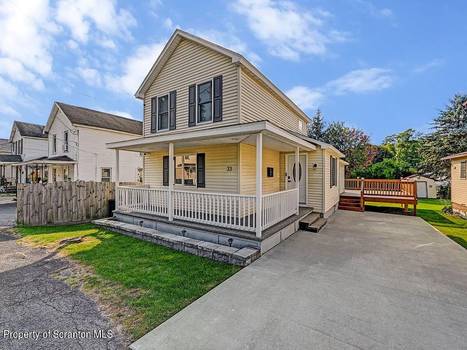 Electric bills are attached in documents so you can see how reasonable it is per month. This is a must-see home! Move in condition! Open floorplan, 5 nice size rooms, first floor laundry, Eat-in kitchen with beautiful wood cabinets and mosaic backsplash, Corian counters, center island, appliances, French doors to a nice rear deck, engineered hard wood flooring, recessed lighting, first floor bathroom with a mounted television, / Bluetooth /lighting for music, a jetted soaking tub, 2nd floor offers two nice size bedrooms, one has a built-in desk, plush carpeting, closet space, and storage in the basement. The roof is approximately four years old, spray foam insulation on all exterior walls and the flooring between the first floor and basement, newer electric service and panel box, updated plumbing, sewer line and bilco doors to the basement. This home has so much to offer, move in condition, fantastic location to highway access and job opportunities, very low taxes, nice size yard, concrete driveway for parking and off street parking as well. Gas available if buyer wanted to convert. All information, sizes and dimensions are approximate and not exact. All information is not warranted or guaranteed.