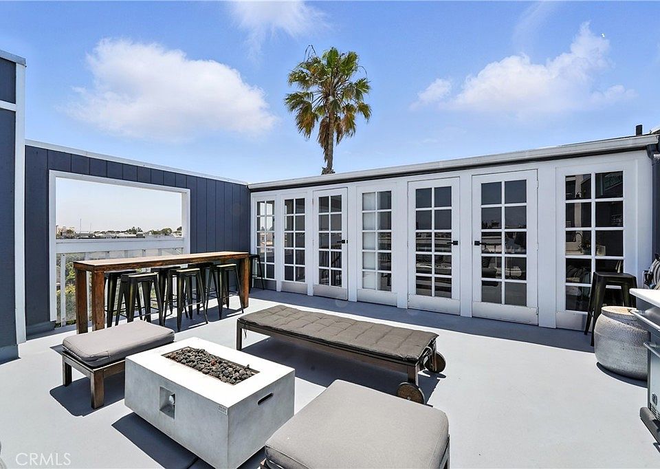 The third level loft includes an ensuite bathroom, ample closet space, and canal views. Step into the top level that offers a flexible space for an office, studio, or den, with direct access to an expansive rooftop deck. Enjoy outdoor living with a built-in kitchen, fire pit, patio seating, and views of the canal, mountains, and Hollywood sign.