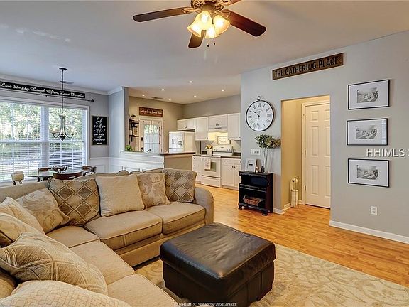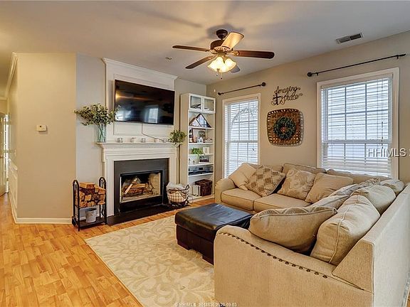 Light and airy end-unit townhome, located in the neighborhood of Westbury Park. Walk to the park and pool, or stroll the beautiful tree lined sidewalks. First floor includes an over-sized bedroom, wood burning fireplace, half bath, and kitchen, which opens to the expansive family room. Upstairs you will find the master bedroom and 2 additional bedrooms, separated by a full bath Wood tread stairs, laminate floors, and numerous other upgrades. Great floor plan with extensive, versatility located within a short drive to Old Town Bluffton and centrally located to shopping and restaurants.