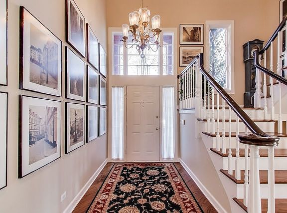 Fabulous and rarely available Regent Wood home with gorgeous pond views, mature landscaping and expansive outdoor living spaces . Move-in-ready condition with neutral decorating and newly refinished hardwood floors throughout main living areas. The beautiful recent redecorating, and impeccable maintenance of this home make it possible to move right in. Easy living with a first floor master suite, first floor den and spacious two story living room opening up to the dining area. Two large additional bedrooms upstairs, one with beautiful built-ins. Eat in white kitchen with tons of cabinet space opens to private patio and access to generous attached garage. Great home for entertaining with huge deck off living area with lots of privacy and surrounded by trees. Lower level with lots of upgrades and built-in desk/office area, rec room with built-ins, and tons of additional space in lower level for exercise, storage, etc. Easy access to the expressway, shopping and forest preserve trails.