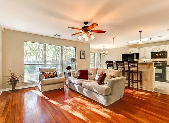 HOME AT LAST! Adorable home has been freshly painted throughout. Pretty wood floors & tile, no carpet. Spacious open floorplan. Nice Kitchen with plenty of cabinetry, pantry, breakfast bar & sunny dining area. Large Den with a wall of windows. Split plan features private Master with garden tub, separate shower, two sinks & walk-in closet. Two addt'l bedrooms with nice closet space & large laundry room. Great Madisonville location. Oversized fenced yard...115 x 100 lot & MOVE-IN READY so Call Today!!!