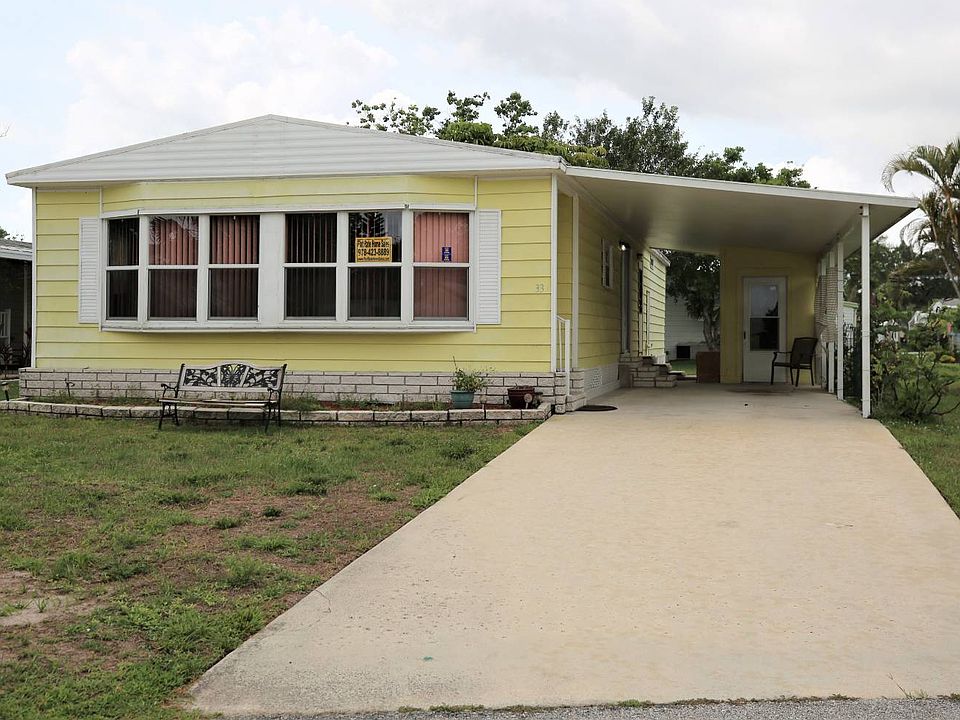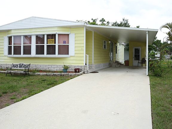 SPACIOUS HOME IN SPANISH LAKES COUNTRY CLUB EXTERIOR: This beautiful home sits on a cul-de-sac on a quiet street in Spanish Lakes Country Club. Features a carport and extra long driveway, along with a sizable backyard. This home has been very well maintained, and comes with all the major appliances. INTERIOR: This is a very cozy two bedroom two bathroom house that has been well maintained. The home flows very nicely, and is open and spacious. The two bedrooms are a great size, and the dining area opens up to the living room and Florida room in a way that makes the home feel even bigger. The bathrooms have been completely updated along with new laminate flooring throughout. This home features many large windows that flood the house with natural lighting KITCHEN: The kitchen is full of cabinetry and has a decent amount of counter space. The appliances are in great shape along with the lighting, and the kitchen features a double stainless steel sink. The large window floods the kitchen with natural lighting, providing a comfortable and warm setting. MASTER BEDROOM: The master bedroom is currently holding two queen size beds , and has lots of room to spare. This room is flooded with natural light, features a HUGE walk-through closet, and the bathroom has been redone with a new sink/vanity and flooring. GUEST ROOM: This room is a good size for a second bedroom with a queen size bed. This room is located at the back of the home, right next to the guest bathroom. The guest bathroom is a full bathroom complete with a shower/tub combination, and features a new sink/vanity and flooring. CABLE: Comcast, Direct TV WATER AND SEWER: On site water and sewer- reverse osmosis ELECTRICITY: Florida Power and Light APPLICATION REQUIREMENTS: Able to show three times the amount of the lot rent , no pets, and must be 55+. AMENITIES: Pool, sauna, fitness room, library, billiards, craft room, bocce, shuffleboard, pickleball, tennis and a 9 hole golf course. SPANISH LAKES is a friendly 55+ active community, quiet location, with easy access to I95. Fort Pierce is located on the Treasure Coast and is a 15-20 minute drive to the beach. Close access to shopping , restaurants , and much more. Come and see for yourself....
