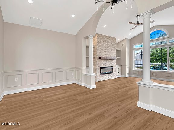 Escape to your own private oasis in this stunning waterfront property. Step into a world of warmth and comfort as you enter the open-concept living space, perfect for creating lasting memories with loved ones. This stylish home boasts sleek modern finishes and an abundance of natural light that dances through the windows. Take pleasure in the gourmet kitchen, with SS appliances, quartz countertops, pot filler, dry bar, wine cooler, everything you need to have in the kitchen, is there. Once inside you will be greeted by brand new waterproof hardwood floors, built in Hall tree with bench and storage cubbies, fresh paint, and a spacious living room with an electric fireplace accentuated by a stone surround and built in cabinets. This modern home has 2 fireplaces, one in the living room and a gas fireplace in the family room. The primary bedroom has two walk-in closets and a sitting area. Both bathrooms are completely redone, with the primary boasting a double vanity and toilet separated from shower and sink by a doorway. Enjoy doing the laundry in this beautiful laundry room with brand new washer and dryer. New furnace, tankless water heater, wainscoting moldings and crown moldings throughout. Inside Air conditioner air handler is new. Enjoy all the new electrical amenities at low cost on a monthly basis due to the solar panels. The house has been completely rewired and new electrical panel installed. With the breathtaking view of the lake, brand new sunroom addition with the skylights, manicured landscaping you will feel like you are on vacation every day.