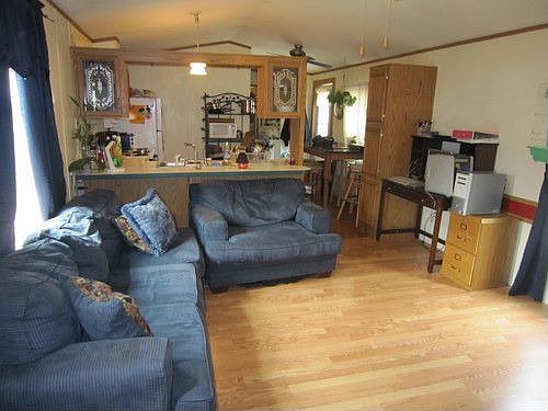 Beautiful Three bedroom one bath home with many upgrades though out the home including new flooring, front door and fixtures. Home sits on one of the nicest lots in the park with a wooded back lot. Home also has an out side garden and landscaping. home has been well maintained.