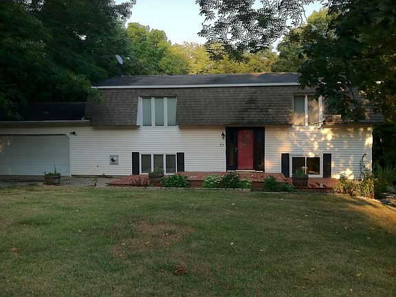 Home is located in Heritage Lake Subdivision on quiet cul-de-sac. Halfway between Bloomington and Peoria. Property contains 2 lots very wooded and secluded with small creek and abundant wildlife. Lake is only 2 houses away with endless floating, fishing, and swimming. Home has almost 500 sq/ft of deck space for relaxing or entertaining including one off of the master bedroom. Home has hardwood, laminate and tile throughout first floor with one carpeted room. Basement has one carpeted room and the rest is comprised of natural slate. All stainless appliances stay with house kitchen also has custom schrock oak cabinetry. Wet bar with copper backsplash in basement and a 3 seasons room with reclaimed barn siding which opens up to a large deck on one side and a fenced in area on the otherside which was used for dogs but could be a kids playground area. Garage is 2 1/2 with a large workbench and cabinets. Central air and heat. There is also a wood pellet stovein the basement that keeps the house plenty warm all winter. Downstairs bathroom all custom tile with rain shower. Washer and dryer stay as well. Home comes with all lake ammenities including pool, clubhouse, beach, private fishing, docks, clubs and numerous social functions. Neighborhood Description http://heritagelakeassociation.com/hla/