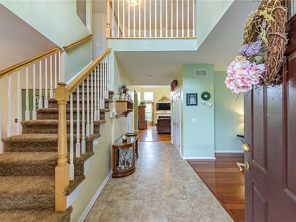 An impressive home w/updates galore, nestled on 1.2 acres of professionally landscaped land in sought after Skyview Estates. 2 story foyer welcomes you through a traditional flr plan. HW fls expand from rm to rm & shine like new! A voluminous FR boasts cathedral ceilings, wood burning fireplace, & neutral tones offering a refreshing finish! French doors off the FR lead to a spacious office. EIK is overflowing w/features! Newly refinished cabinets, walk in pantry, newer Bosch Dishwasher w/SS interior & a dining area where sliding doors lead to a luxurious outdoor oasis! Housed on the 2nd fl are 4 spacious BRs each furnished w/lighted ceiling fans! Master BR offers a private full bath. New HW fl in the finished basement. Newly paved driveway leads to a 3 car garage w/insulated garage doors w/openers. Private landscaping around the pool that feats. top of the line pool cover & automatic pool cleaner. Brand new A/C & heating system. THE LIST OF FEATURES GOES ON!