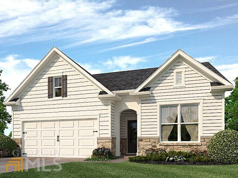 Active Adult 55+ Swim/Clubhouse Community! Convenient Dallas location 12 minutes from the Avenues at West Cobb. Open concept, 3 bed/2 bath Acadia ranch plan home. Family room with corner stacked stone fireplace. Kitchen features beautiful cabinets, stainless steel appliances, pendant lights, tile backsplash, and granite countertops! Revwood flooring throughout main living areas. Luxury, oversized tile shower with easy entry in the private primary suite. Covered back patio, perfect for entertaining. Smart home technology. Stock photos. Not actual home.