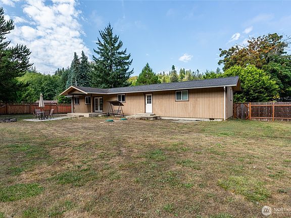 Tucked in natural landscape, just steps from the soothing sounds of Morse Creek with trails surrounding, this 3 bed, 1.75 bath home offers a peaceful retreat in a quiet neighborhood. Built in 2012, the home features 980 sqft of contemporary living space, including vinyl laminate flooring, an open-concept kitchen accented by a warm, live-edge countertop with an abundance of natural light streaming through large windows. The guest bath conveniently doubles as the laundry area, while the primary suite includes its own private 3/4 bath. Outside, enjoy a spacious fenced yard with a chicken coop and multiple utility sheds for storage, a recently replaced septic tank (2022), and ample space to park your RV next to the main structure.