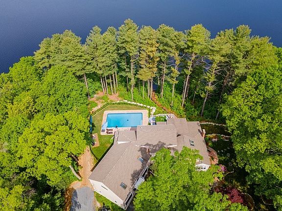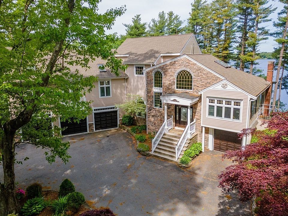 Welcome to your waterfront dream home! 5000+ Sq. Ft. of bliss with approximately 240 ft. of breathtaking waterfront views of fully recreational Lake Sabbatia! This stunning home is one of the most spacious on the lake with exquisite architectural details and design throughout that capitalizes on the natural beauty of the lake combined with a modern, luxury resort feel. The elegant entryway leads to newly renovated kitchen and pantry, open living /dining, renovated bath and a vaulted sitting room. The king sized master en-suite with cathedral ceilings featured a walk-in custom closet and renovated bath, and bonus great room w/ balcony. 2nd level houses 2 private bedrooms with bath, possible in-law, home offices, teen or Au Pair suite. A walkout lower level features a renovated exercise rm, family rm, playroom/den, & patio. All levels lead to balconies/deck overlooking the lake! Newer in-ground pool, retaining walls, 3 heat/AC units, & steps to dock and lake. 50 minutes to Boston!