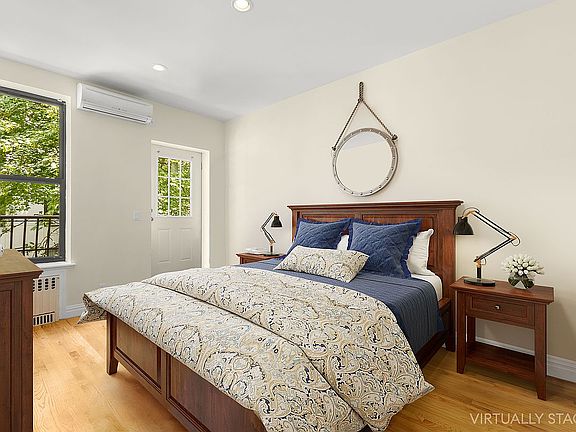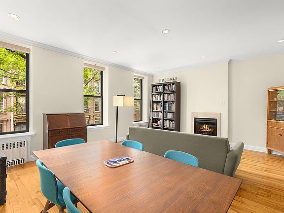 Here is your opportunity to purchase a gorgeous, expansive yet affordable 3-bedroom, 2-bathroom 1068 sqft condo brownstone apartment in the coveted neighborhood of Boerum Hill. With beautiful treetop views from the 3 over-sized windows, the sunlit open kitchen/living room layout features 9'4" ceilings, a gas fireplace, hardwood floors, recessed lighting. Entertain in your 19'1" living room wide enough to accommodate a large dining table, a living room set plus a desk. The spacious chef's kitchen is designed with an island/breakfast bar, affording lots of storage, stainless steel appliances plus the essential vented range hood. The 3 bedrooms in the rear of the unit will grant you the much-needed sanctuary at the end of your day. The primary bedroom with beautiful tree views has a door that opens to let oxygen in on a nice day. All bedrooms have deep double closets with added lofted storage and transom windows to allow natural light in the hallway. There are 2 full bathrooms, one with a jacuzzi and a shower in the other. Your personal washer/vented dryer is an added bonus. 33 Saint Mark's Place is currently a self-managed building with an off-site Super. The building was built in 1901 and renovated in 2010. There is shared storage in the basement for your bikes/strollers. This home is close to all the trains in Brooklyn, provides easy street parking and a quick entry to BQE. Restaurants, shops, places of worship could just be a short walk.