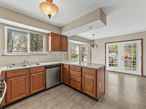Almost 1/3 acre lot seems like you are in the country-only minutes from Main Street & Streets of St. Charles-close to everything. This 4 bed, 2 1/2 bath home has over 2400+ sq ft of living space for you to enjoy. Beautiful mature trees & landscaping welcome you- o/s 2 car side entry garage on a culdesac. Large covered front porch to enjoy relaxing after a long day. The spacious great room would be great for family gatherings & has french doors that lead to that stunning backyard. Formal dining room/in home office area with parquet flooring. Oak cabinets & stainless steel appliances plus the preferred gas stove will make your meal prep a breeze in this kitchen & large breakfast room with bay window for beautiful morning views & another set of french doors to an oversize deck-what great bbq's could happen there. Upstairs you will find master suite with large w/i closet & attached full bath with dual sinks plus 3 other nice size bedrooms. MFL. Finished L/L rec room and office area-hurry.