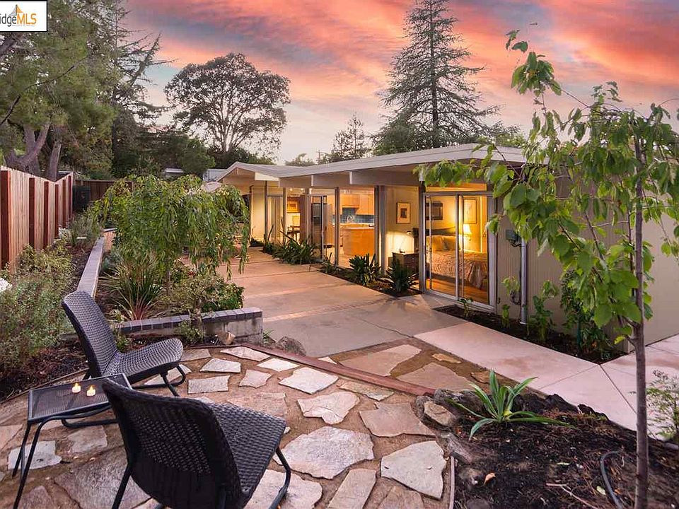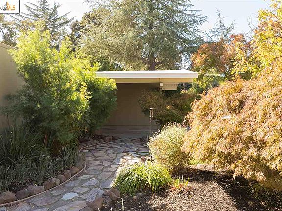 Fabulous Atrium-model, mid-century modern Eichler, situated on a quiet cul-de-sac in the highly coveted neighborhood of Rancho San Miguel in Walnut Creek. Built in 1959, this gorgeous 4 bed/2 bath home boasts a flowing, open-concept floor plan with a focus on bringing the outdoors in. The magical atrium, which acts as a room without a ceiling, is the center of the home, offering 3 access points into the house. The u-shaped kitchen w/ island offers an opportunity for families + guests to comfortably gather, while sliding floor-to-ceiling glass doors open up to let the outside in. The living room features a brick fireplace, vaulted post-and-beam ceilings and opens up to the dining room + atrium. The back garden is the pride + joy of the home with a secluded back patio surrounded by nature, and a side yard equipped with raised veggie boxes, ready for planting. Easily enjoy the indoor-outdoor lifestyle this sweet home offers.
