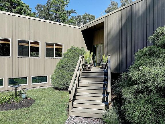 Appealing and well-built Contemporary home designed by Jim Estes and constructed in 1977. Set back from the road at the end of a 300' driveway, this cedar-sided home sited on over 2 acres has two spacious decks and loads of windows that welcome the outdoors in. A 6+ car garage with 3 overhead doors, an office and an enormous loft was built in 2010 and boasts radiant heat and a separate 200 amp service. The property has been tremendously well-maintained and enjoys a superb location which is both private yet convenient. Providence and Boston are easily accessed from this bucolic setting enjoyed by Rehoboth Village residents. A truly unique property and an equally unique opportunity!