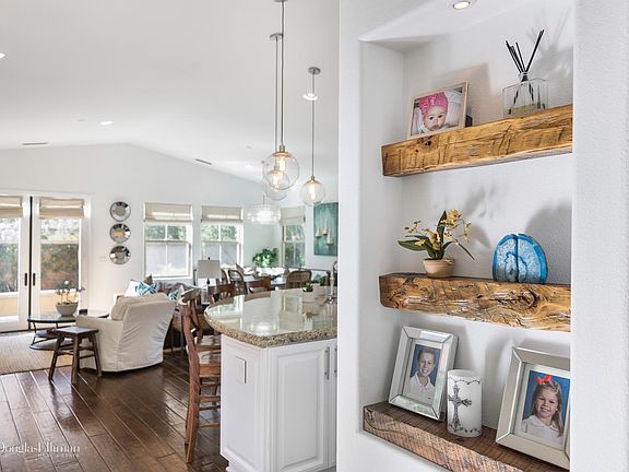 Rarely on the market and one of only 12 single level homes in the community, welcome to 33 Shade Tree, located on a prime lot in secluded and gated Canyonâs Edge. This popular Plan 1 residence includes 3 bedrooms and 2 1/2 baths and offers a professionally designed wrap-around yard with a dual patios, bubbling fountain, and built-in BBQ making it perfect for entertaining with friends and family. High ceilings create an inviting feeling at the entry foyer. Stroll into the great room boasting a well-appointed kitchen with a spacious granite topped island with counter seating, stainless steel appliances and crisp white cabinetry. An adjoining family room has a custom built-in for your AV equipment, an additional built-in ideal for your china and crystal collections, even a custom built-in to display fine wines. Loaded with natural light, the open floor plan affords views of the lushly landscaped grounds out of every window. Additional features include dark rich wood flooring, built-in c