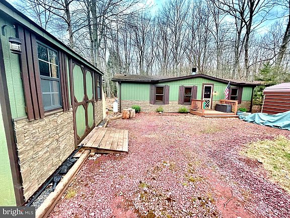 NOW SHOWING! This Rustic 3 Bed 2 full Bath ranch home will be your perfect retreat! Nestled in the quiet wooded area of Hickory Hills, you're sure to find everything you are looking for! Protect your toys with an oversized enclosed steel carport(on concrete slab) and a large storage shed. Relax in the tranquility of your home while the deer roam, enjoy the amenities of an inground pool, lake, basketball courts, or park, or take advantage of being near the poconos and all they have to offer! If you are looking for the perfect location along with a well kept home; this is the one! When you walk through the door, you will instantly feel at home and the wood burning fireplace will catch your eye with its stonework. There is also a pellet stove, giving you many options for heat. The home also has a central propane heating system, along with ductless split a/c. Updated flooring and light fixtures add to the beauty of this home. The updated kitchen/dining area with its use of gorgeous woodwork, plenty of cabinet storage space, stone backsplash and updated lighting bring the outdoors inside perfectly! The master bedroom even has a recessed electric fireplace in the wall for warmth and ambience! One of the 2 full baths are in the master bedroom surrounded in wood work! The other full bath is conveniently located in the hall for the other 2 beds! Main floor laundry room convenience , with another exit that leads out to a a large deck that is perfect for entertaining as you and your guests look out to the pocono woods and a small stream! Located just 20min from pocono skiing,water parks, bike /walking paths, kayaking,white water rafting,hunting, fishing shopping, movie theaters, outlets, and plenty of restaurants! Near I80,81, and the PA Turnpike for easy travel in all directions! Call for more info today!