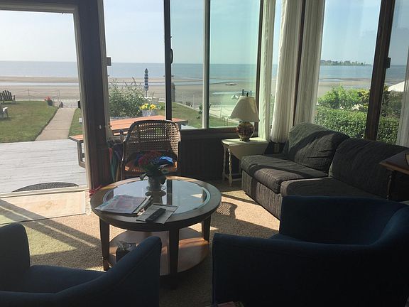 Lovely first floor apartment, fully furnished, in a multi-family beachfront home available for seasonal rental. Full kitchen with dishwasher; laundry; remodeled ensuite bathroom; walk-in closet; central AC. Beach views from beach-facing living room, deck and yard. One mile walk or drive from town center and metro-north. Owner pays for water. Off-street parking available for one car. Other parking available on the street. Pet deposit is $150. This is a no-smoking apartment. Available for 8 months only, October 1 - May 31.