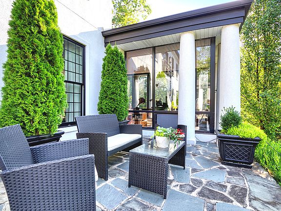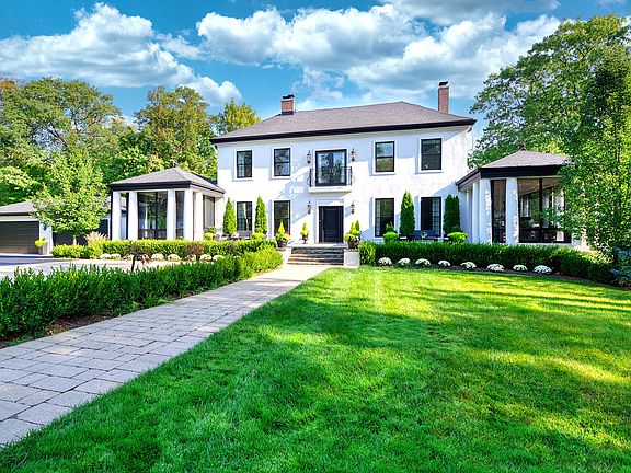 Your private sanctuary awaits. Set deep off Sheridan Road on 2 acres, this luxury offering is the perfect blend of comfort and style. Updated for today's buyer and located on a property that has all the features allowing for an active yet meditative lifestyle. Flooded with natural light, a flowing floorpan and dark, hardwood floors throughout, this home welcomes you with open arms. The spacious great room's high ceilings and limestone fireplace set the tone, and entertaining is made effortless with the large dining room. The beautiful white eat-in kitchen is a chef's dream with high-end appliances, a large walk-in pantry. The kitchen opens to the family room and deck that overlooks the pool. Enjoy the view from your first floor home office. The 2nd floor landing provides a view of the lushly landscaped ravine and leads to the primary suite and two ensuite bedrooms. The primary suite is your place to indulge in serenity, boasting a sitting area, fireplace,large walk in closet and a spa like bath. The 3rd floor reveals a game room, full bath, two large bedrooms, a small laundry room and storage. The walkout basement offers a media room, a full bath with a sauna, large laundry room and more storage. That's not all; a separate gym attached to the 4 car garage, a brand new sport court for tennis and pickleball and so much table land for entertaining! With its private ravine setting, this is a one of a kind property, truly a very special place to make memories.