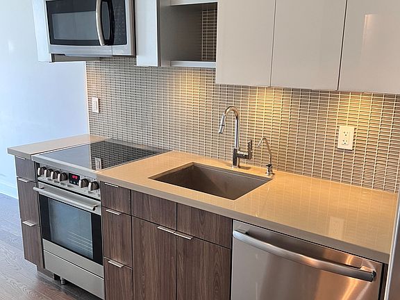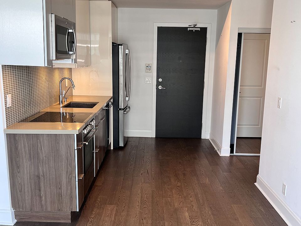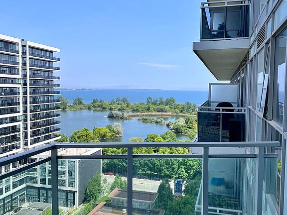 Experience lakeside living at its finest in this beautifully designed 1-bedroom suite at Jade Waterfront Condos. This bright and efficient layout features floor-to-ceiling windows, a modern kitchen with stainless steel appliances, in-suite laundry, and a spacious living area that opens to a private balcony with stunning, unobstructed views of Lake Ontario. The bedroom offers excellent natural light and generous closet space, creating a comfortable and inviting retreat. Jade Waterfront Condos offers an exceptional lifestyle with premium amenities including a 24-hour concierge, rooftop pool and hot tub, fitness and yoga facilities, theatre room, games lounge, guest suites, outdoor BBQ areas, and more. Located in the heart of Humber Bay Shores, you're steps to waterfront trails, parks, cafes, restaurants, shops, and transit, with quick access to the Gardiner Expressway and downtown Toronto. Perfect for those seeking comfort, convenience, and breathtaking waterfront views in one of Toronto's most desirable communities.
