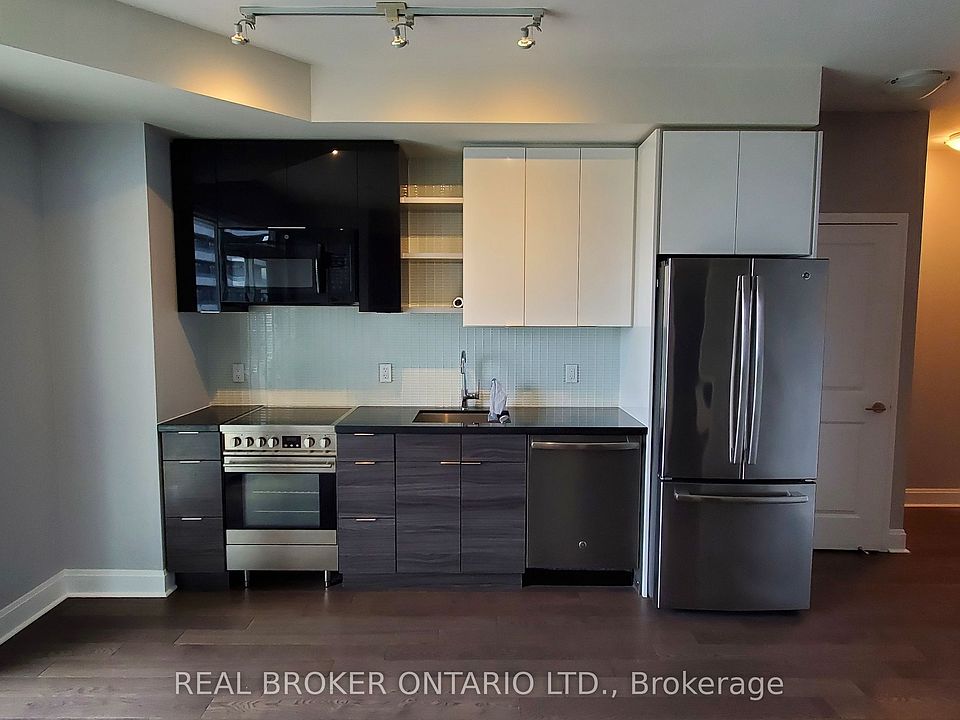 Welcome to Jade Waterfront Condos, where contemporary design meets relaxed lakeside living. Perfect for a young professional, this refreshed 1-bedroom + media suite invites you to settle in and start your next chapter in style. Step inside to find a bright galley-style kitchen, beautifully equipped with stainless steel appliances, a deep sink, and lacquered cabinetry softly lit by under-cabinet LEDs. Every detail has been considered, from soft-close drawers to a dedicated filtered water tap for those small, everyday luxuries. The bathroom is truly a place to unwind, with marble finishes, a deep soaker tub, and glass shower doors that frame a space designed for quiet moments of calm. When it's time to rest, the queen-sized bedroom welcomes you with Hunter Douglas blackout blinds, balcony access, and something rare and truly special: this is the only 1-bedroom layout in the building that includes a full walk-in closet. Working from home? The pre-wired media alcove makes the perfect home office. Tucked neatly away, yet open enough to stay connected to the flow of the suite. Your in-suite laundry means convenience is never far - a full-sized GE washer/dryer hidden behind closed doors, ready when you need it. The open-concept living area gives you space to create, whether that means cozy movie nights or dinner parties with the lake as your backdrop. And speaking of the lake, step out to your 30-foot full-length balcony, where southwesterly views of Lake Ontario stretch endlessly beyond the glass-panelled railings. Could it get any better? With 620 sq. ft. inside and 144 sq. ft. outside, this suite offers 764 sq. ft. of thoughtfully designed living that effortlessly blends function, flow, and charm. Outside, enjoy the ultimate convenience with cafes, restaurants, groceries, and a scenic waterfront path just steps away. Here, every detail tells a story, and it's ready for you to make it your home.