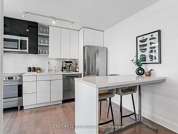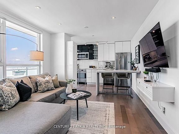 Welcome to 33 Shore Breeze Dr, Suite 3208 a high-floor gem in the heart of Humber Bay Shores, offering one of the most sought-after 1+Denfoorplans at Jade Condos. This 584 sq. ft. unit plus a spacious 157 sq. ft. balcony delivers uninterrupted southeast views of the lake, CN Tower, and city skyline that will take your breath away. The intelligently designed layout includes a separate den, ideal for a home office or study area. The bright, open-concept living space features smooth ceilings, floor-to-ceiling windows, and walk-out access to a private oversized balcony perfect for relaxing or entertaining with a view. The sleek kitchen comes equipped with stainless steel appliances, quartz countertops, and modern pot lights. The luxurious marble bathroom adds a touch of sophistication with high-end finishes and spa-like feel. Extras include premium parking and locker, and unbeatable location just steps from waterfront trails, parks, shops, restaurants, and TTC/GO access. Quick access to the Gardiner makes commuting a breeze. Experience lakeside living at its finest in one of Toronto's most vibrant communities