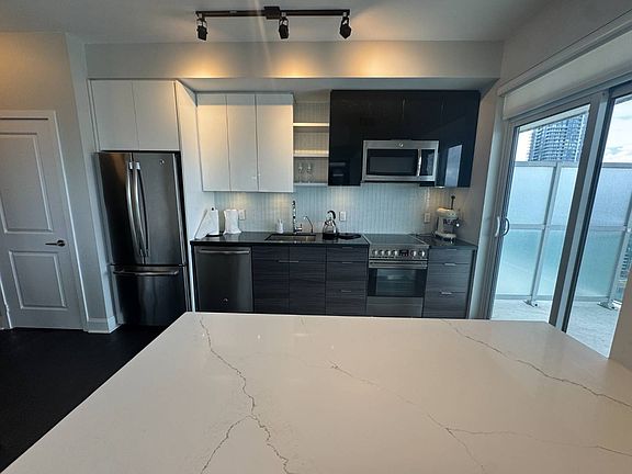 BEDROOMS/BATHROOMS: - 1 Bedroom - 1 Bathroom (4pc) PRICING: - $2600 per month UTILITIES: - Water and Heat Included - Hydro Extra MOVE IN DATE: - Available September 15, 2025 PARKING/ LOCKER: - 1 Spot Included - 1 Locker Included _____________________________________ 33 SHORE BREEZE DR. SUITE 2304 SPECIFICS: - Appliances: Fridge, Stove, B/I Microwave, Dishwasher, Washer and Dryer - Stylish modern kitchen featuring stainless steel appliances, stone countertops, a breakfast bar, and ample storage space - Floor-to-ceiling windows provide abundant natural light throughout the unit - Bedroom features double mirrored closets and offers direct access to balcony - Expansive wraparound balcony - Convenient ensuite laundry - Building amenities: 24-hour concierge, terrace with BBQs, theatre room, fitness centre, and outdoor pool - Prime location! Enjoy scenic waterfront trails, lush parks, and easy access to the Gardiner Expressway and more - Situated in the vibrant Humber Bay Shores neighborhood - Close to parks such as Marine Parade Drive, Humber Bay Shores Park, and Grand Avenue Park - Professionally managed by Landlord Property and Rental Management Inc.
