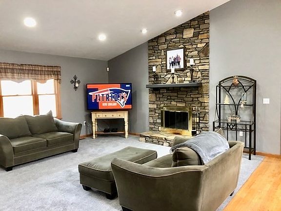 This is the home you've been looking for. Natural setting with woods to the sides and rear of the property. Huge Ranch with 3 bedrooms and 2 1/2 baths on the main level. Cathedral ceiling over the Kitchen, Living and Dining rooms! Ten foot Island with six stools. Two bed room In-law suite with full bath and walk out lower level! Perfect for entertaining. Gatherings for 30 people at one at long table for dining during the Holidays! Great home for multiple generation living arrangements. Oversized 2 car garage with 9 X 9 doors, work area and basement access. Very private acre lot. Attached and detached storage sheds. Have a boat or RV and need a place to park it? The driveway is deep and runs along the side of the garage. Lots of space in and out for many options. Rear composite deck, 32 X 12 feet for enjoying peaceful morning coffee or grilling for many family & friends. Paver patio with fire pit for those cool evenings. Well maintained home is available for a quick closing.